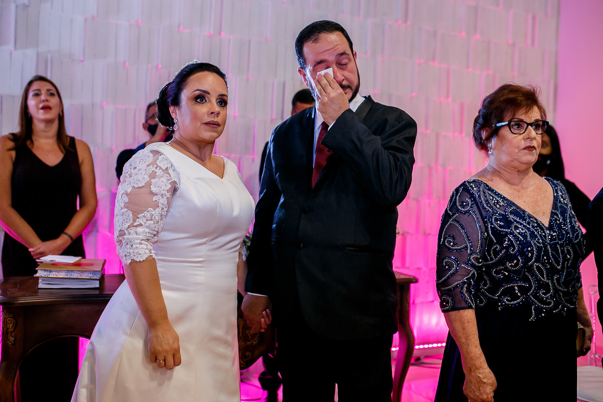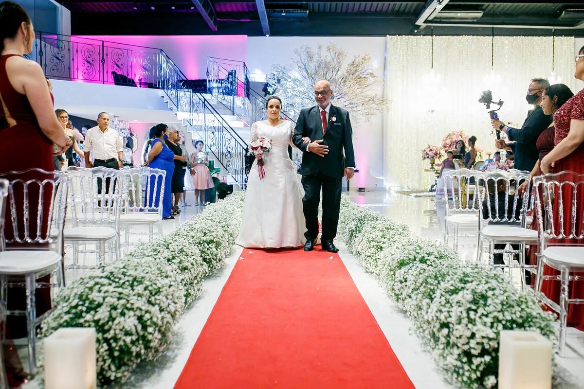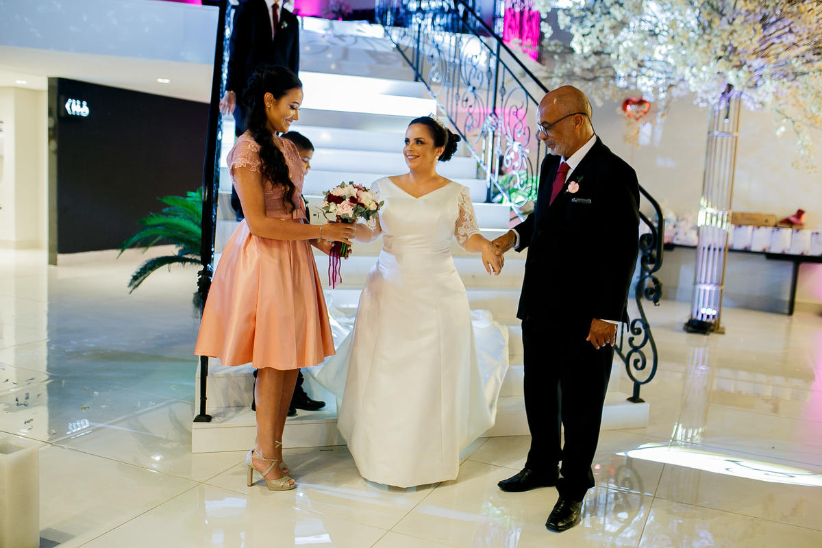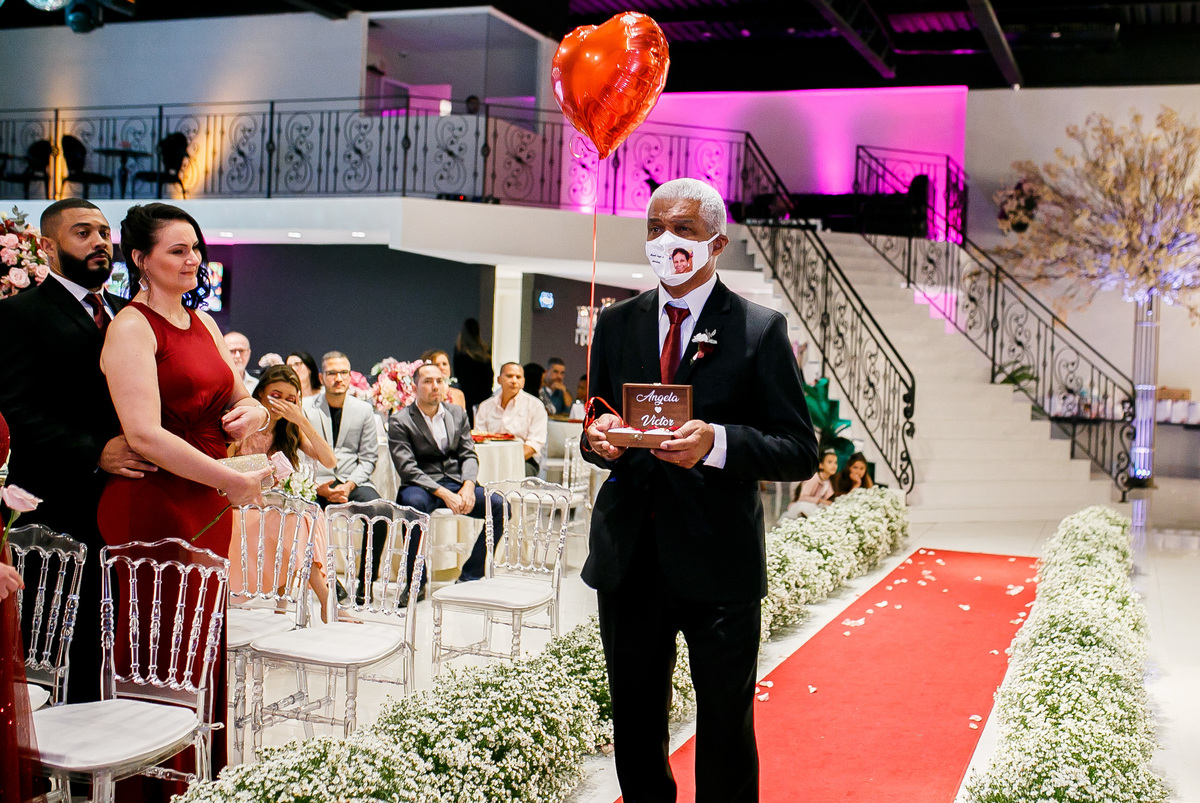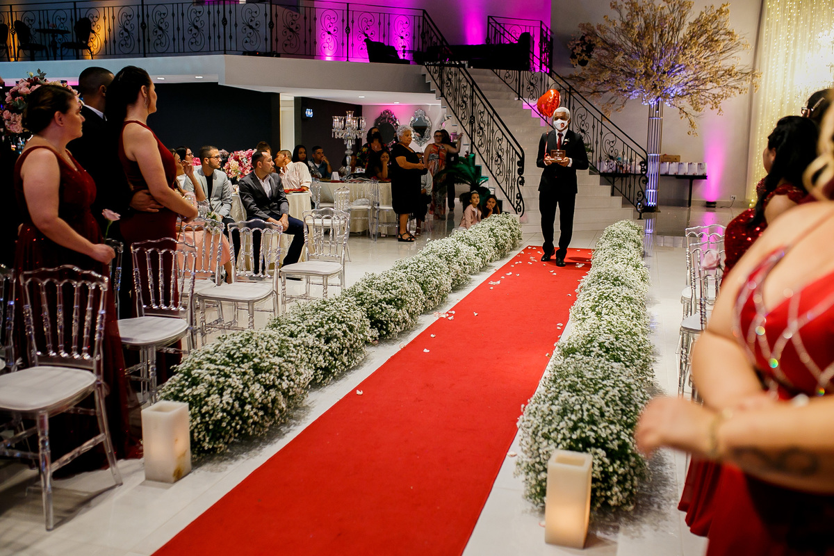 O tio da noiva, entrou na cerimônia homenageando a tia da noiva que havia falecido naquele ano.
