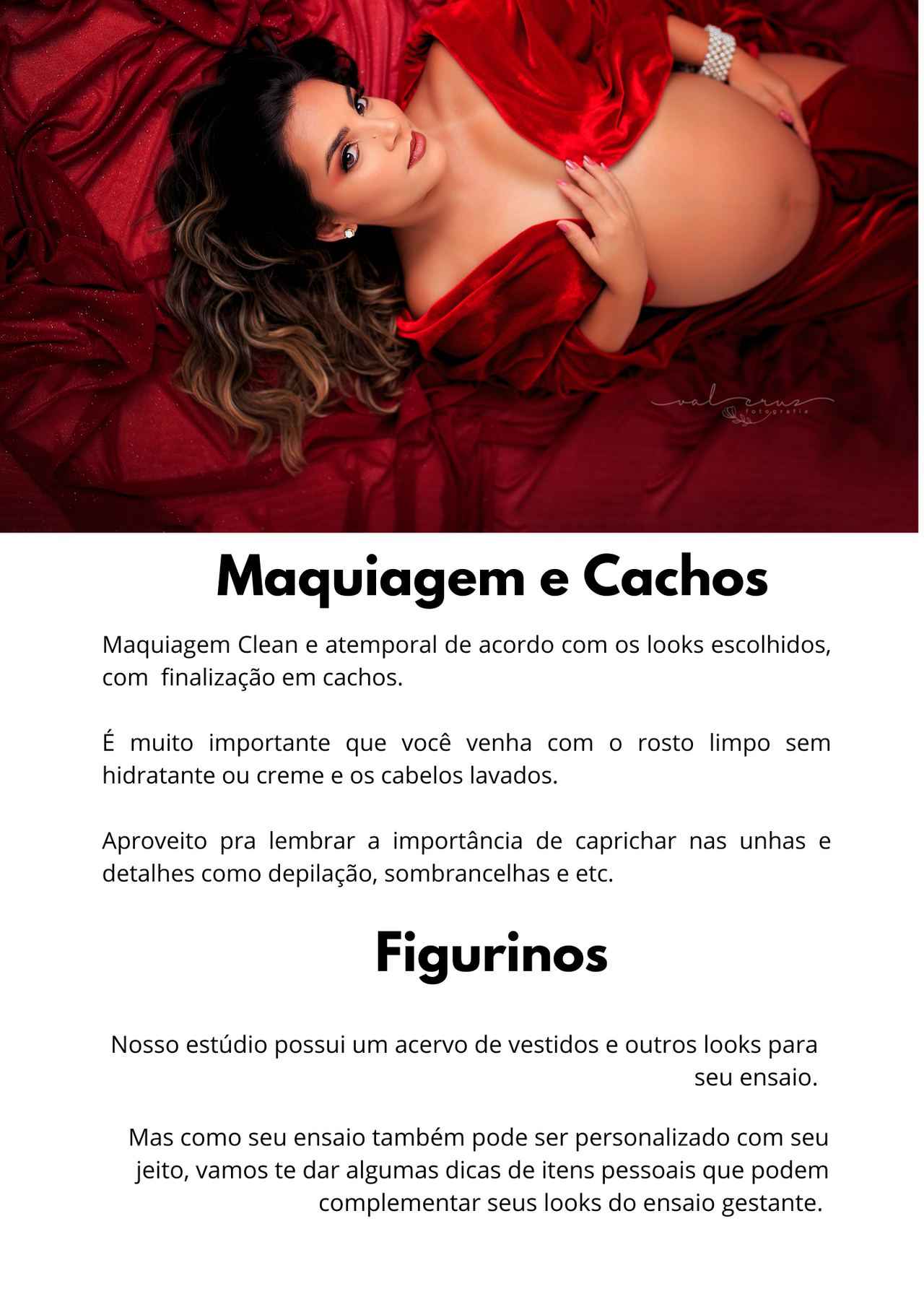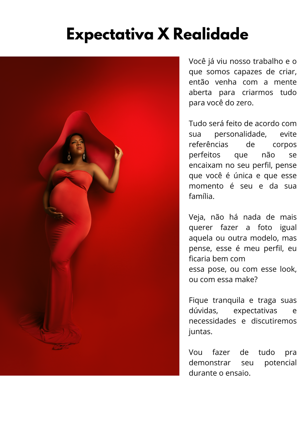 1️⃣ Preparação para o ensaio: Dicas e orientações sobre como se preparar para o ensaio gestante, incluindo a escolha do fotógrafo, seleção de locações, guarda-roupa, maquiagem e cabelo, para garantir que vocês estejam confiantes e prontas para brilhar.